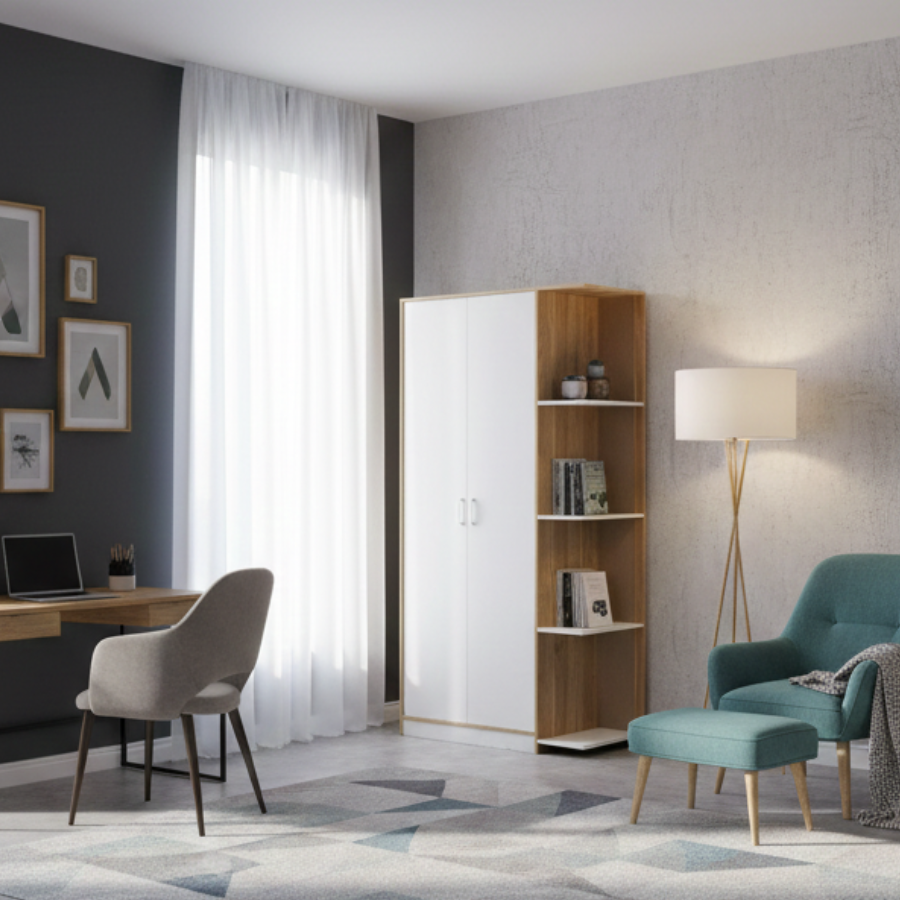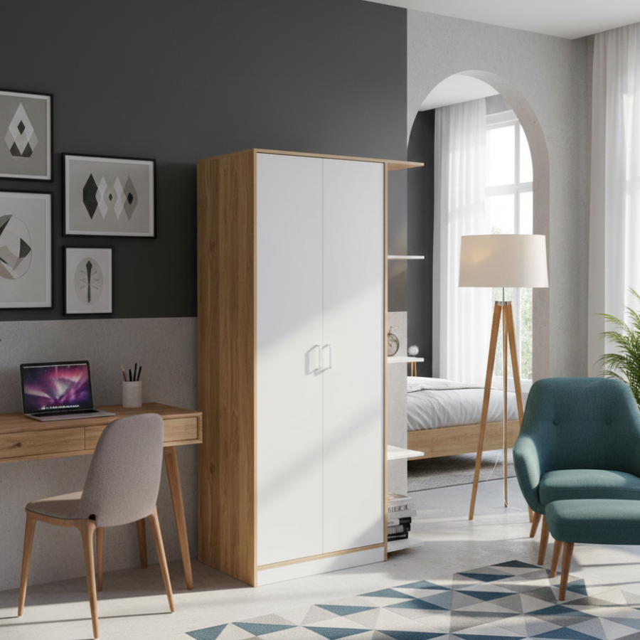 - Chất liệu: Tủ quần áo được làm bằng gỗ MDF đã qua xử lý, không độc hại, đảm bảo bền, đẹp, không cong vênh, không mối mọt...